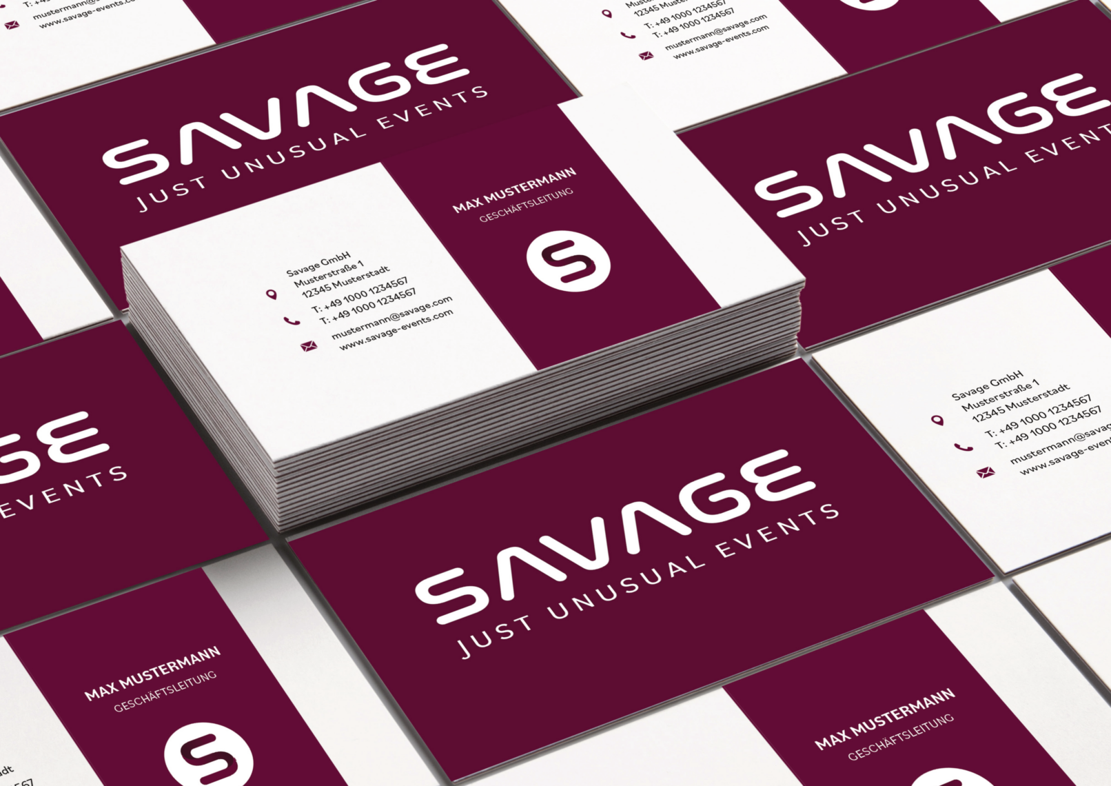Als Erstes stelle ich Ihnen meine letze Arbeit im Fach Corporate Design vor. Die Aufgabenstellung war, sich Gedanken zu machen was für ein Unternehmen den Namen „SAVAGE“ tragen könnte und für dieses das Logo, Firmenausstattung, Design Manual und Website zu gestalten. Ich habe mir gedacht wenn etwas „savage“ (wild) ist dann sind es Partys, deswegen habe ich mich für einen Eventveranstalter entschieden.